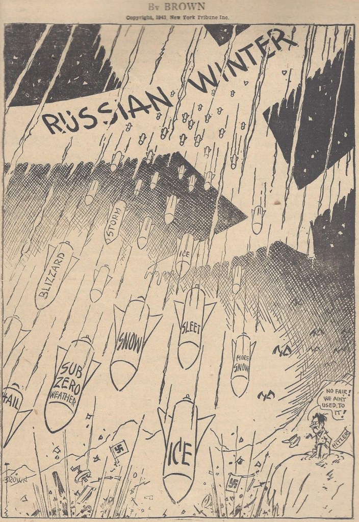 The ice storms were so deadly that an American cartoonist compared them to another deadly enemy of the Nazis.