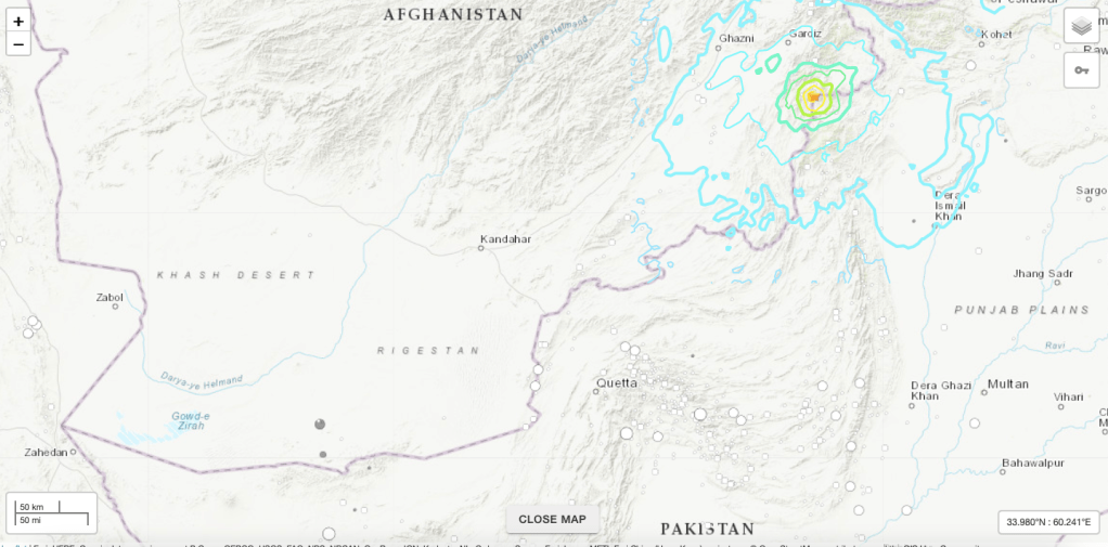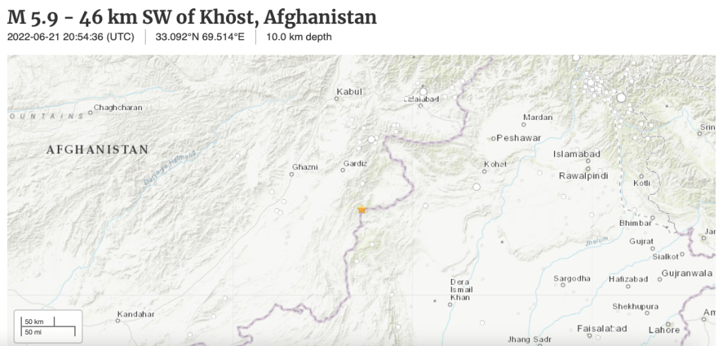 An earthquake strikes exactly on the border of Afghanistan and Pakistan.