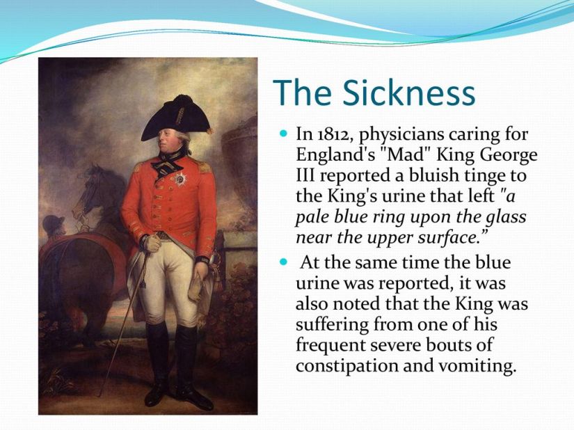 King George was poisoned with psilocybin mushrooms, which turned his urine blue.