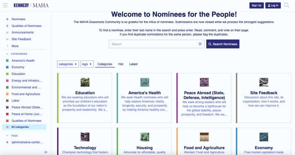 Kennedy has set up a site to solicit public opinion as to the nomination of right-minded people for government posts.